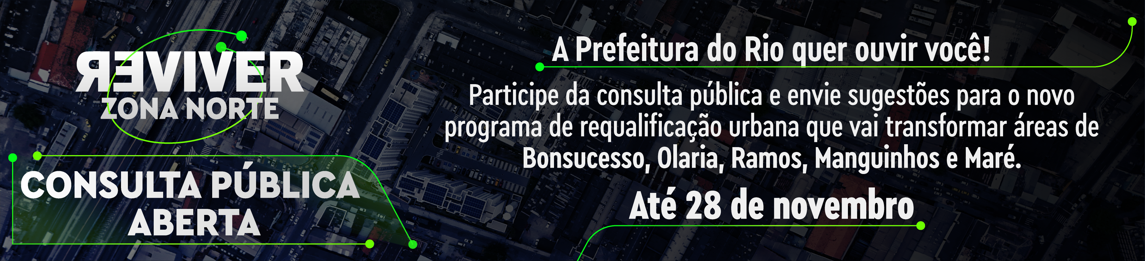 A Prefeitura do Rio lançou, no dia 23 de outubro, uma consulta pública para o novo programa de requalificação urbana da cidade, o Reviver Zona Norte. O objetivo é receber indicações de imóveis situados nas áreas de Bonsucesso, Olaria, Ramos, Manguinhos e Maré, que possam receber projetos habitacionais integrados a serviços, áreas verdes e espaços de lazer. As contribuições podem ser enviadas até o dia 28 de novembro.